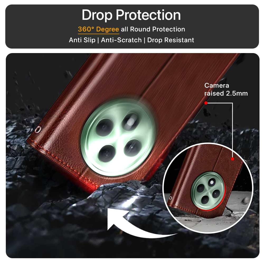 Shock Proof Flip Cover Back Case for Oppo F27 5G | Magnetic Wallet Leather Case with Stand