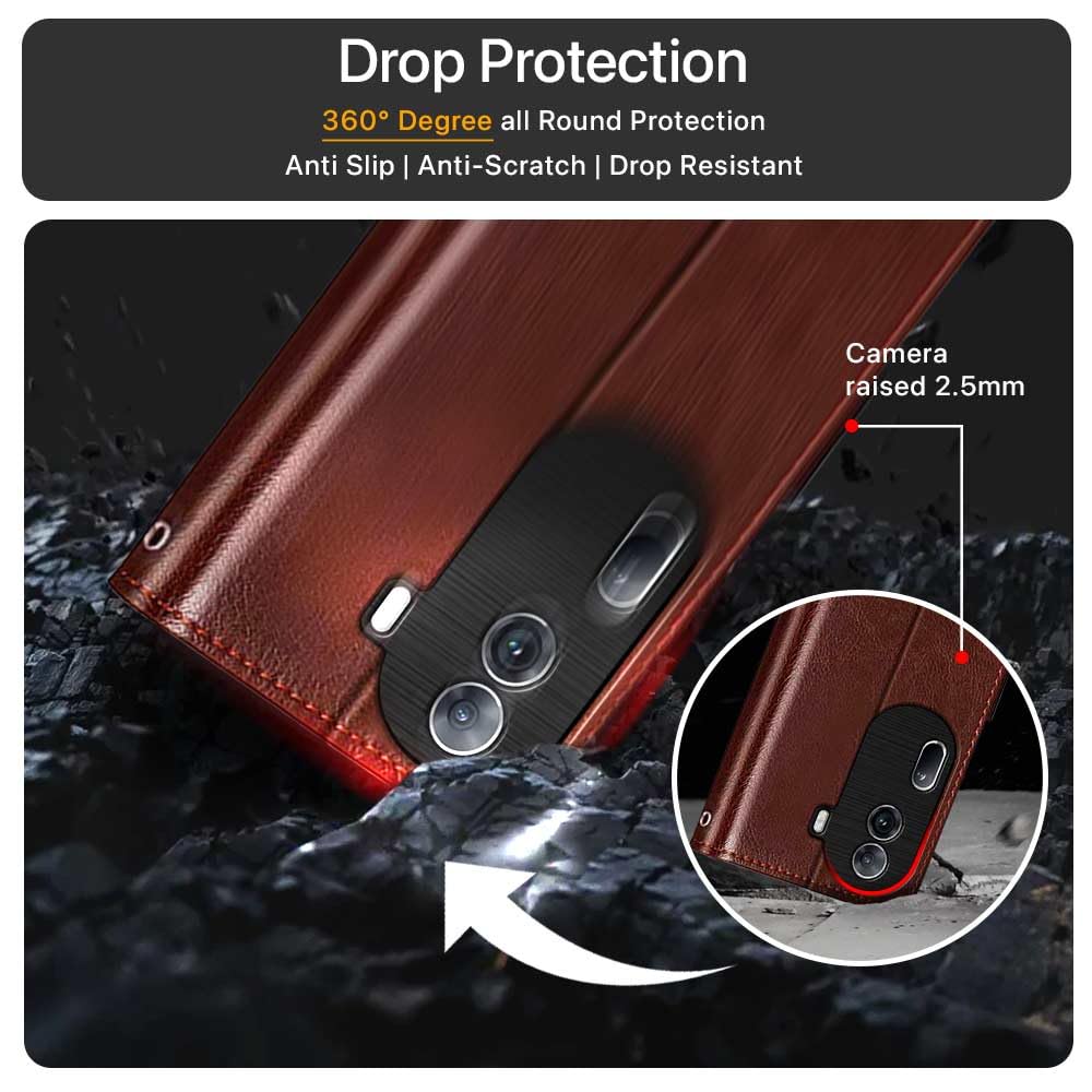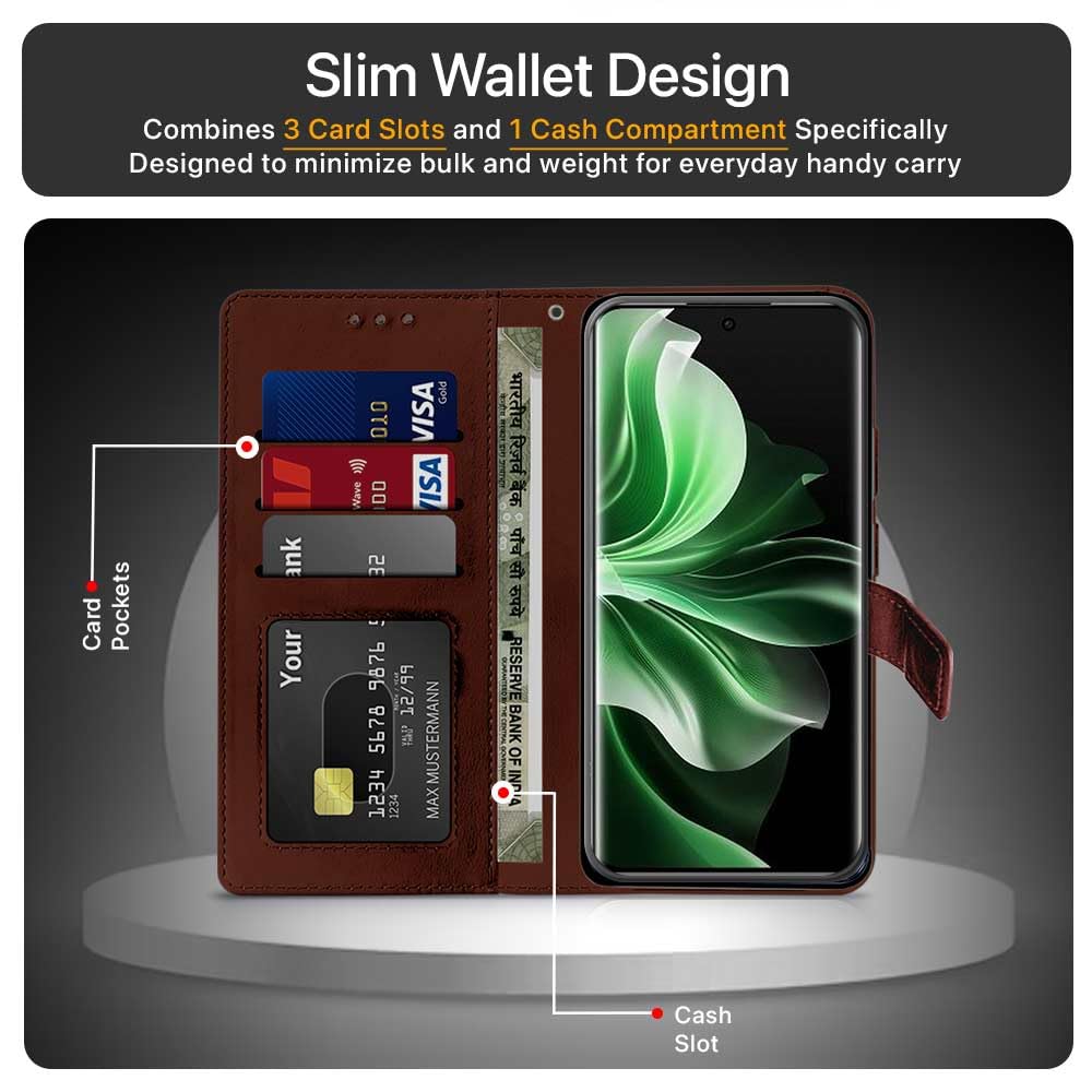 Shock Proof Flip Cover Back Case for Oppo Reno 11 Pro 5G | Magnetic Wallet Leather Case with Stand