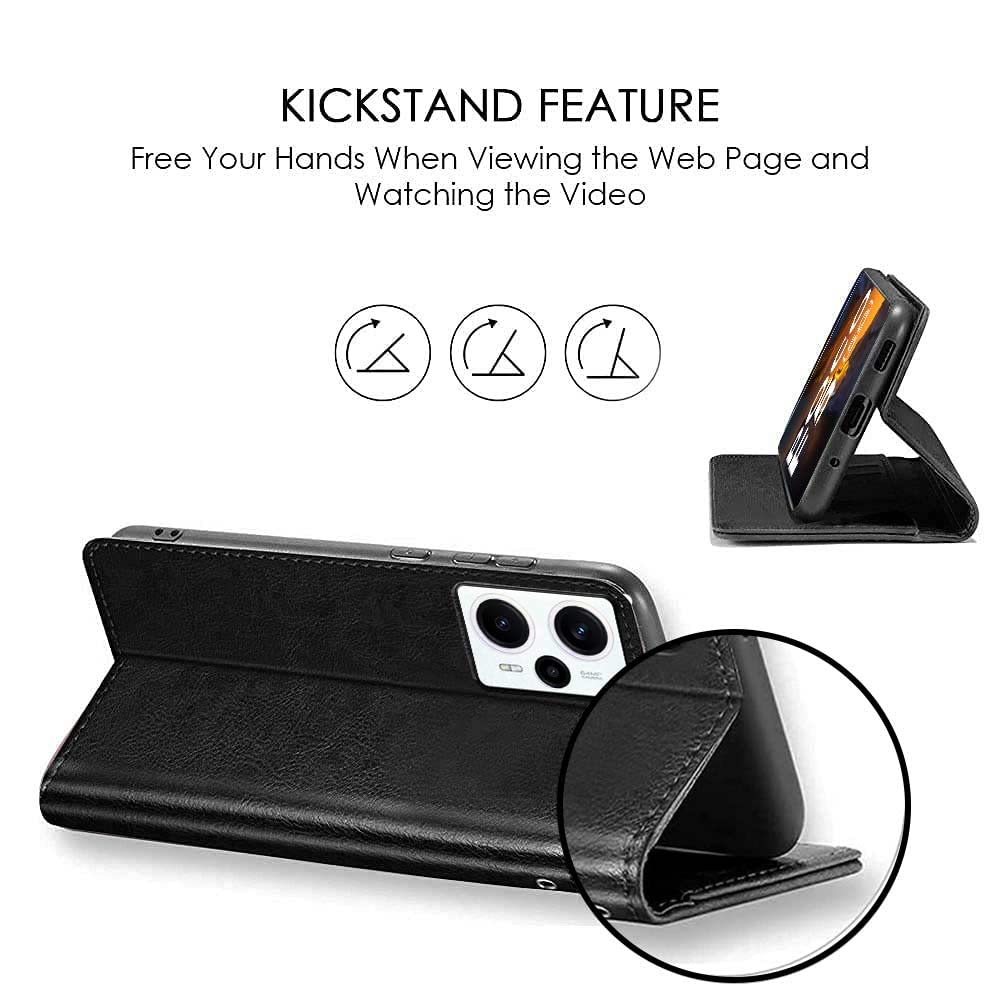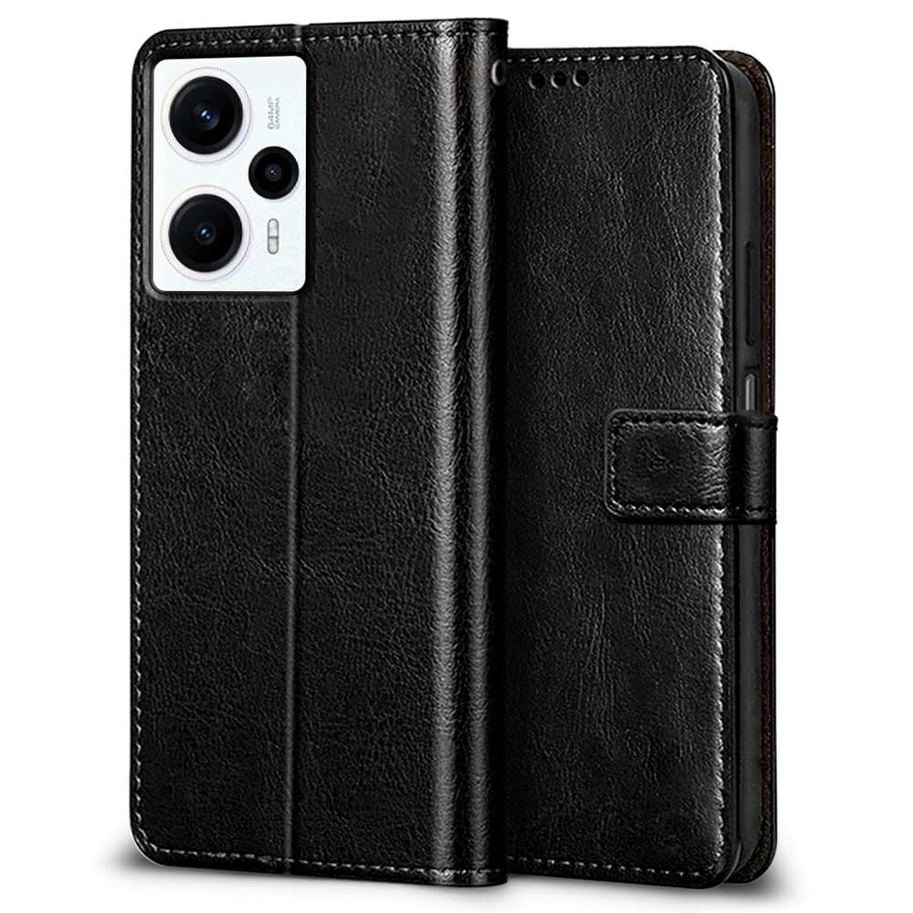 Shock Proof Flip Cover Back Case for Poco F5 5G | Magnetic Wallet Leather Case with Stand