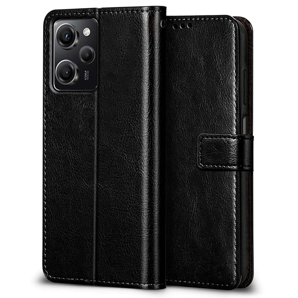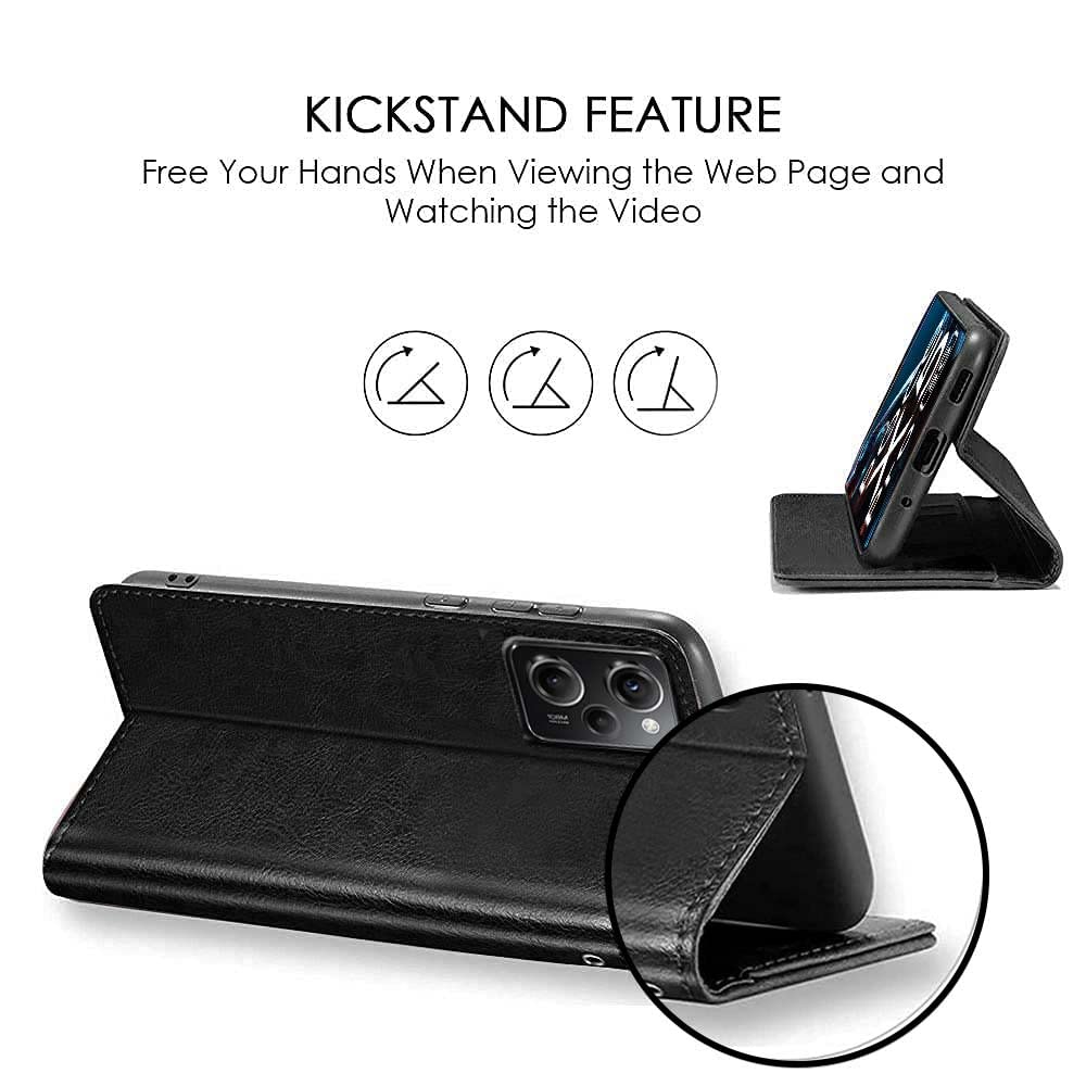 Shock Proof Flip Cover Back Case for Poco X5 Pro 5G | Magnetic Wallet Leather Case with Stand