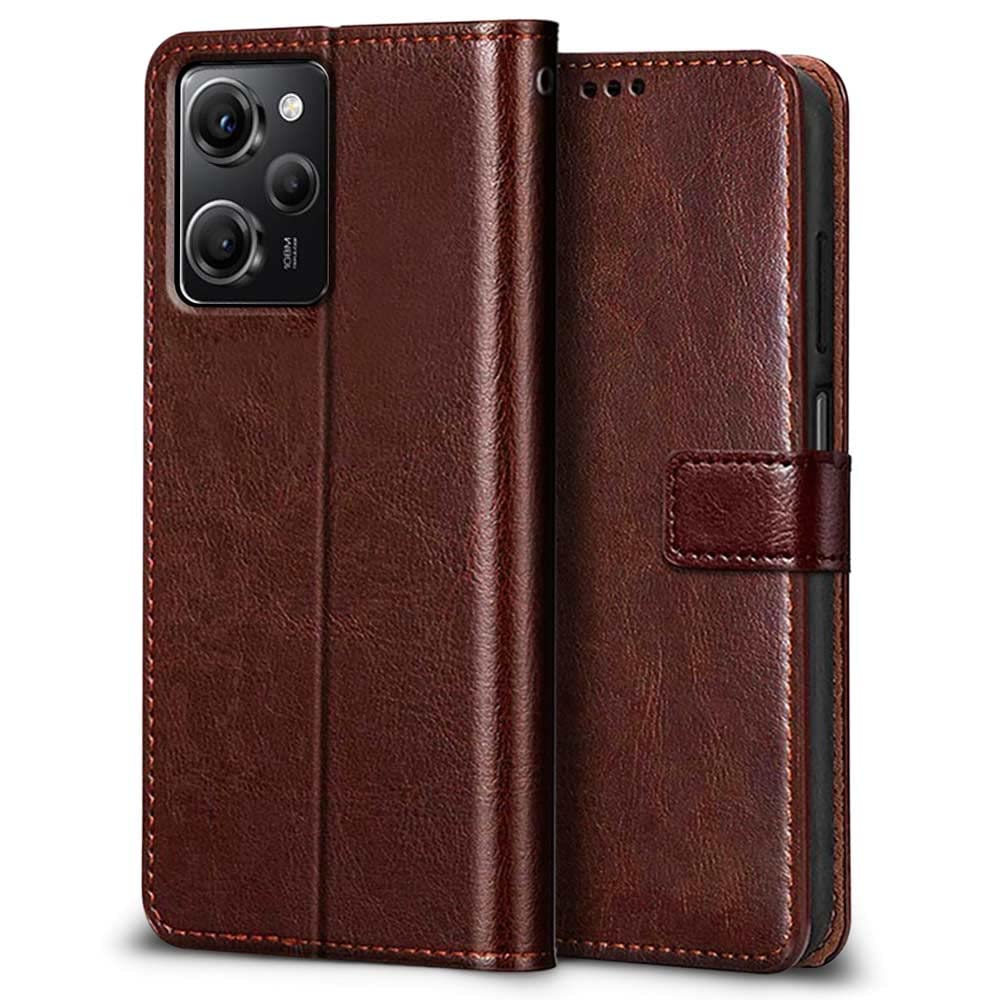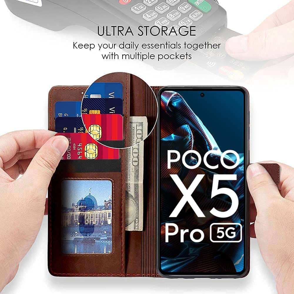Shock Proof Flip Cover Back Case for Poco X5 Pro 5G | Magnetic Wallet Leather Case with Stand