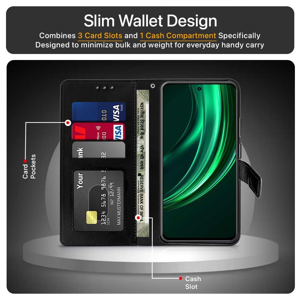 Shock Proof Flip Cover Back Case for Realme 13 Plus 5G | Magnetic Wallet Leather Case with Stand