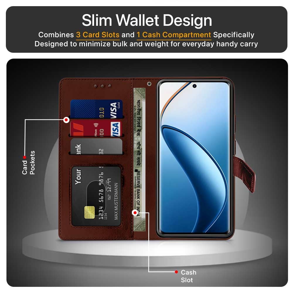 Shock Proof Flip Cover Back Case for Realme 13 Pro 5G | Magnetic Wallet Leather Case with Stand