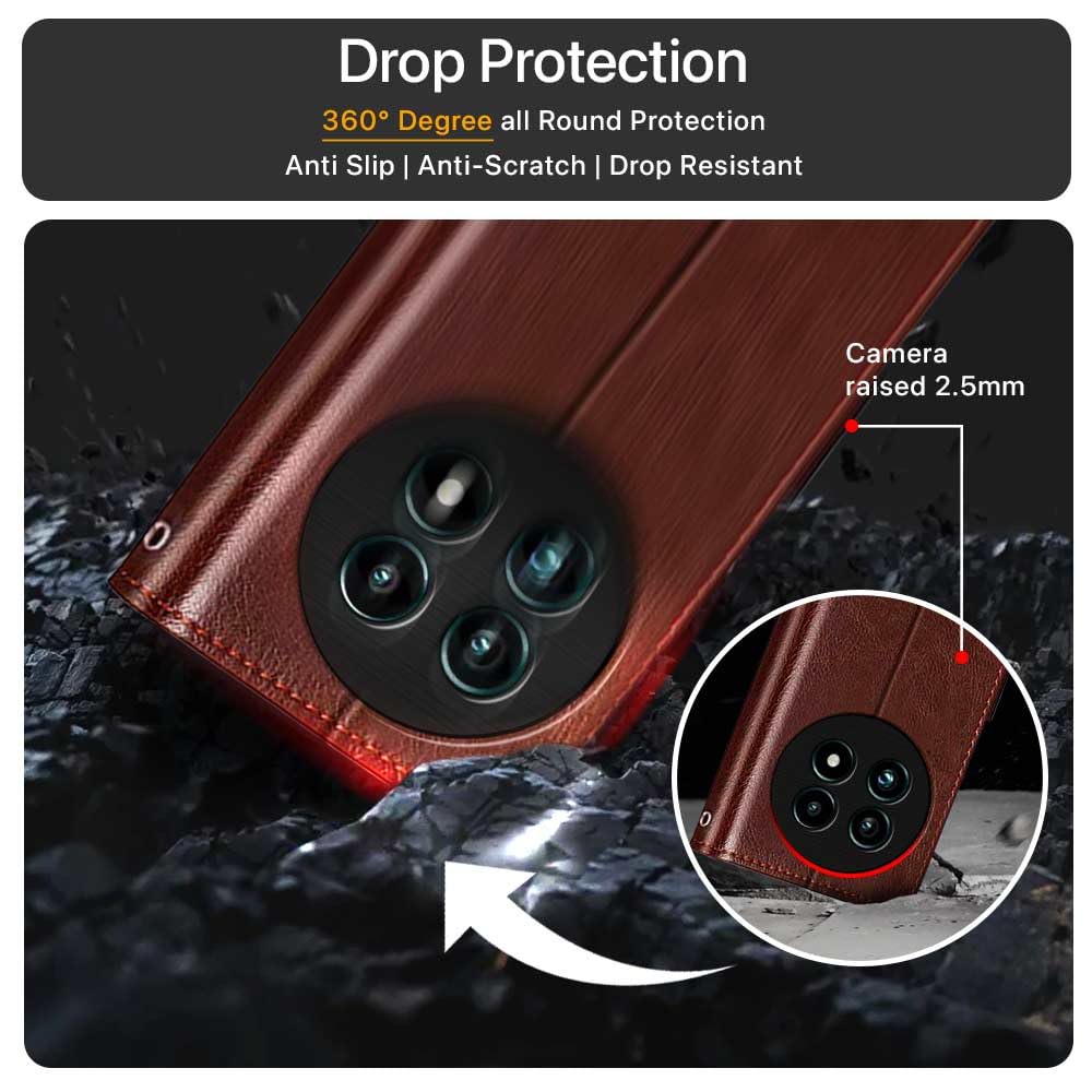 Shock Proof Flip Cover Back Case for 1+ Oneplus 12R 5G | Magnetic Wallet Leather Case with Stand
