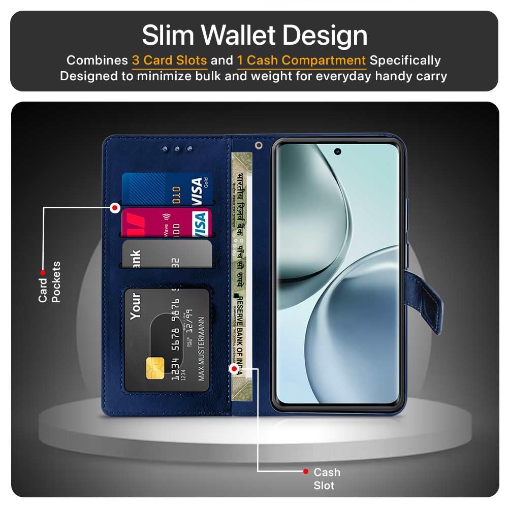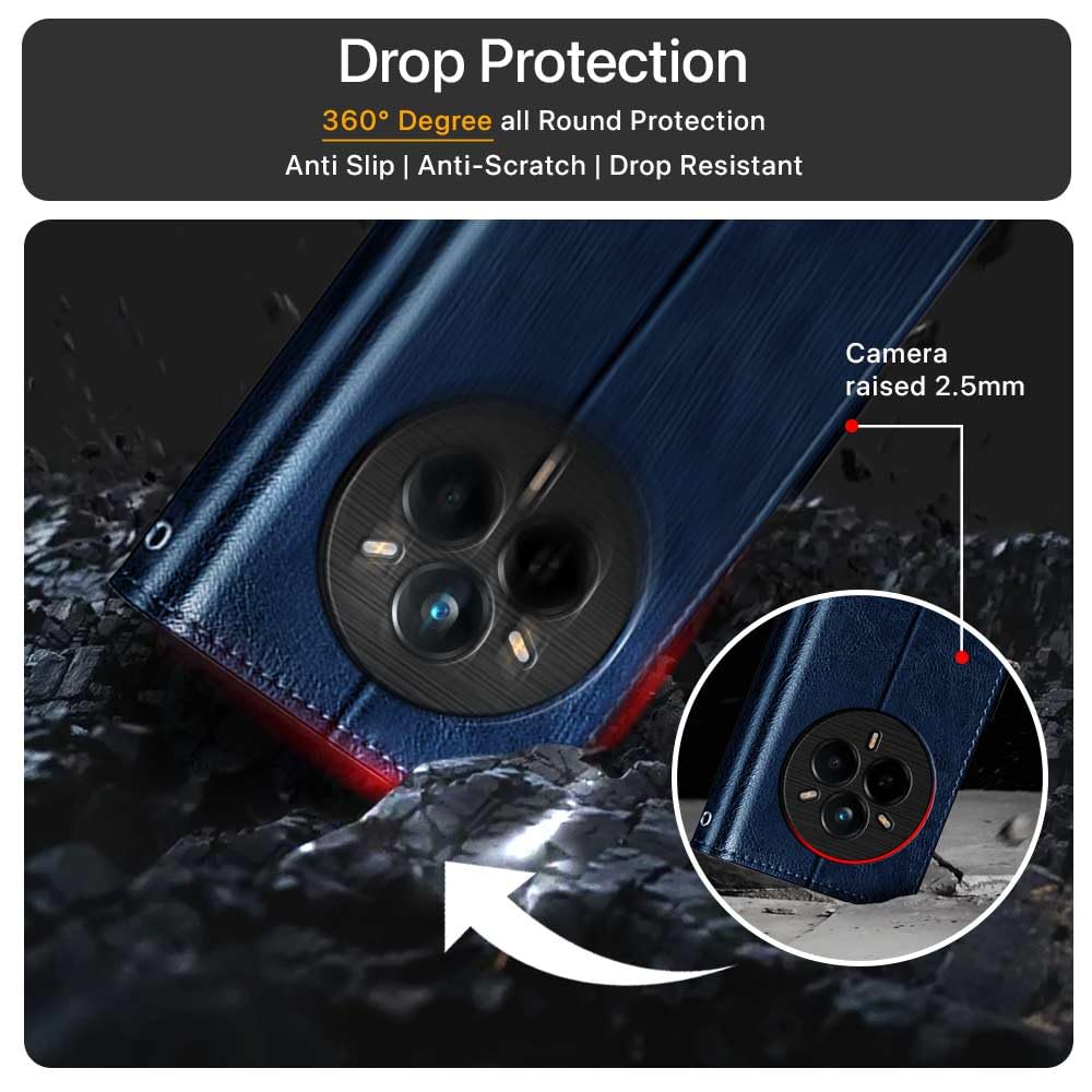 Shock Proof Flip Cover Back Case for Realme 14 Pro Plus 5G | Magnetic Wallet Leather Case with Stand