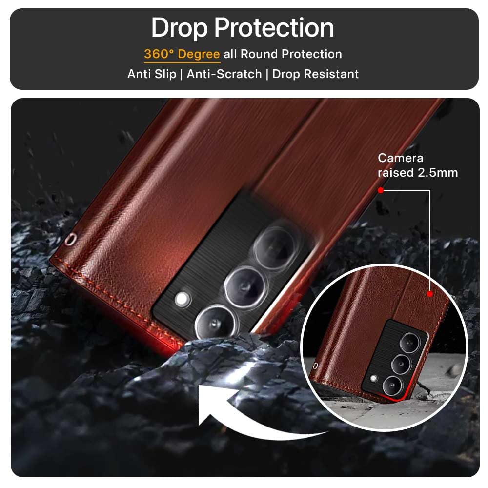 Shock Proof Flip Cover Back Case for Realme 14X 5G | Magnetic Wallet Leather Case with Stand