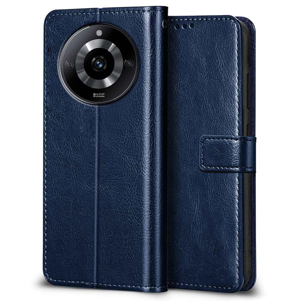 Buy premium shock proof flip cover back case for realme narzo 60 5g. Leather finish with magnetic flip closure, wallet pockets and stand support. Durable protection against drops and scratches with a perfect fit for realme narzo 60 5g.