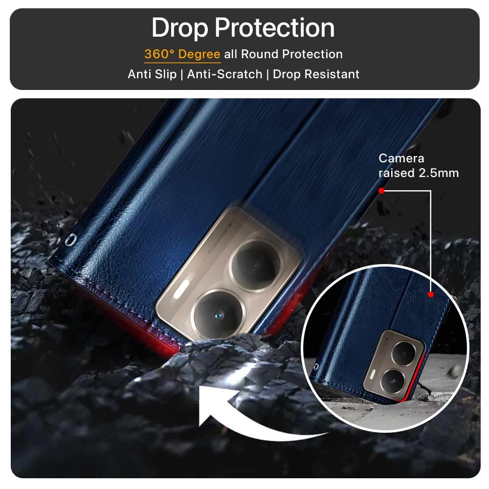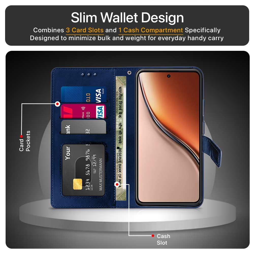 Shock Proof Flip Cover Back Case for Realme P3 5G | Magnetic Wallet Leather Case with Stand