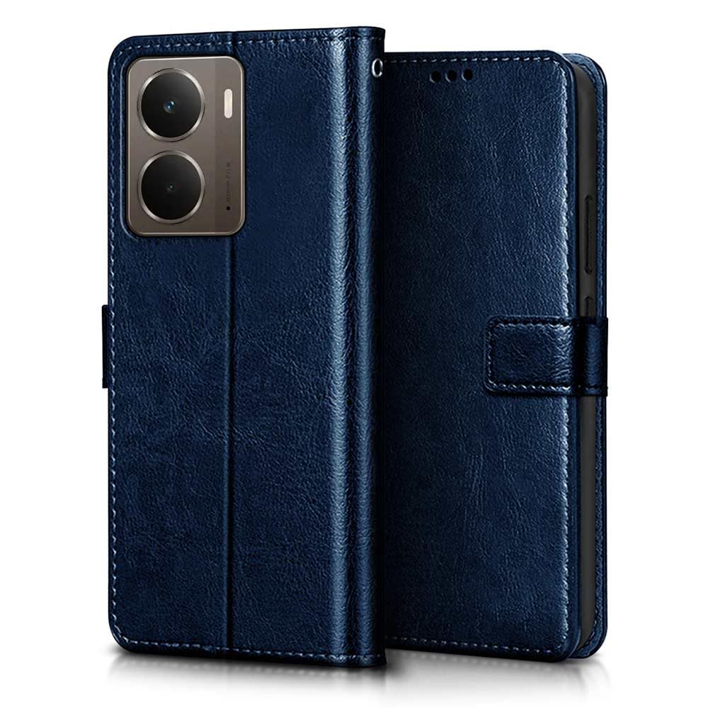Buy premium shock proof flip cover back case for realme p3 5g. Leather finish with magnetic flip closure, wallet pockets and stand support. Durable protection against drops and scratches with a perfect fit for realme p3 5g.