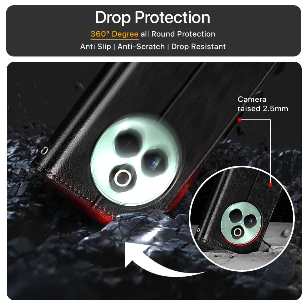 Shock Proof Flip Cover Back Case for 1+ Oneplus 12R 5G | Magnetic Wallet Leather Case with Stand