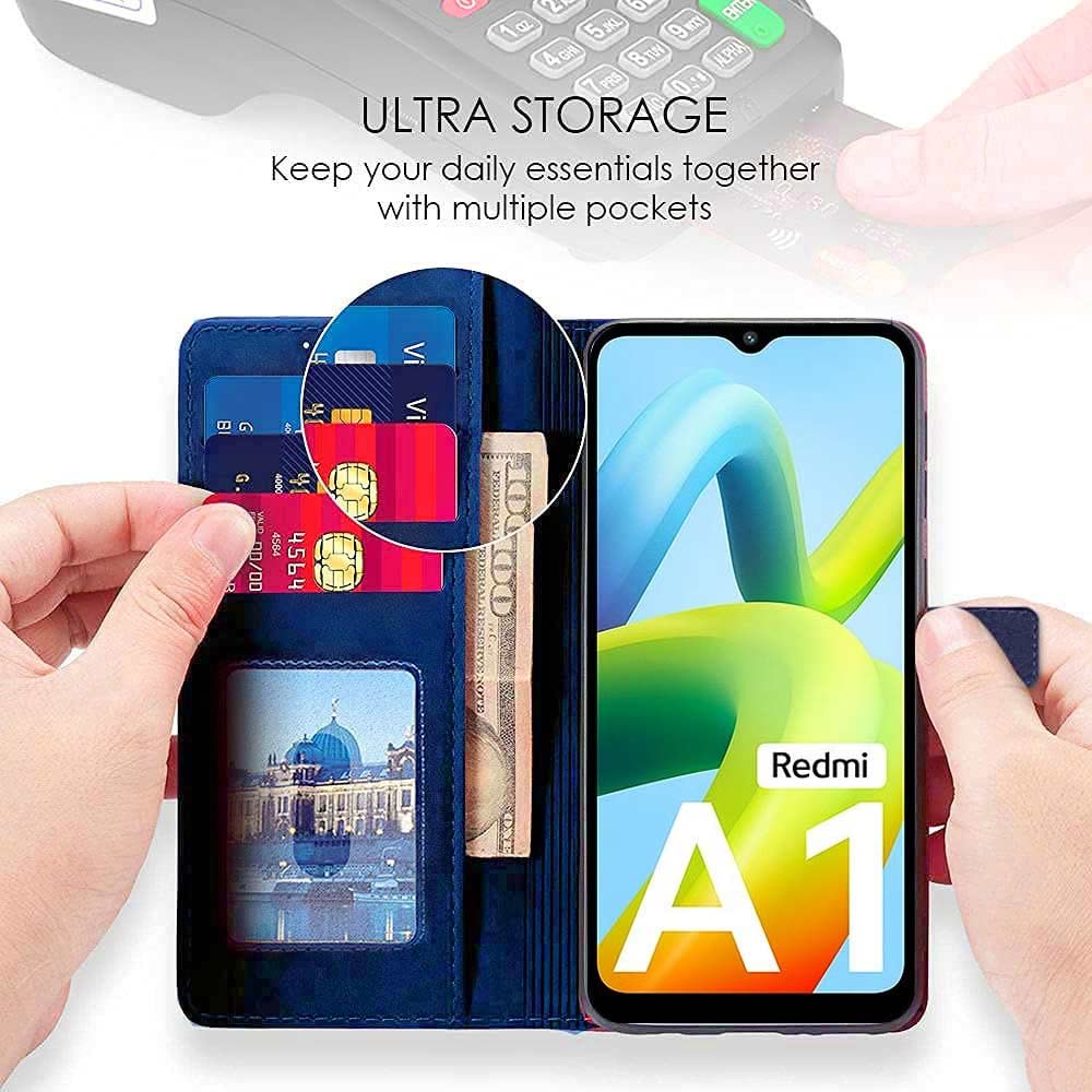 Shock Proof Flip Cover Back Case for Redmi A1 | Magnetic Wallet Leather Case with Stand