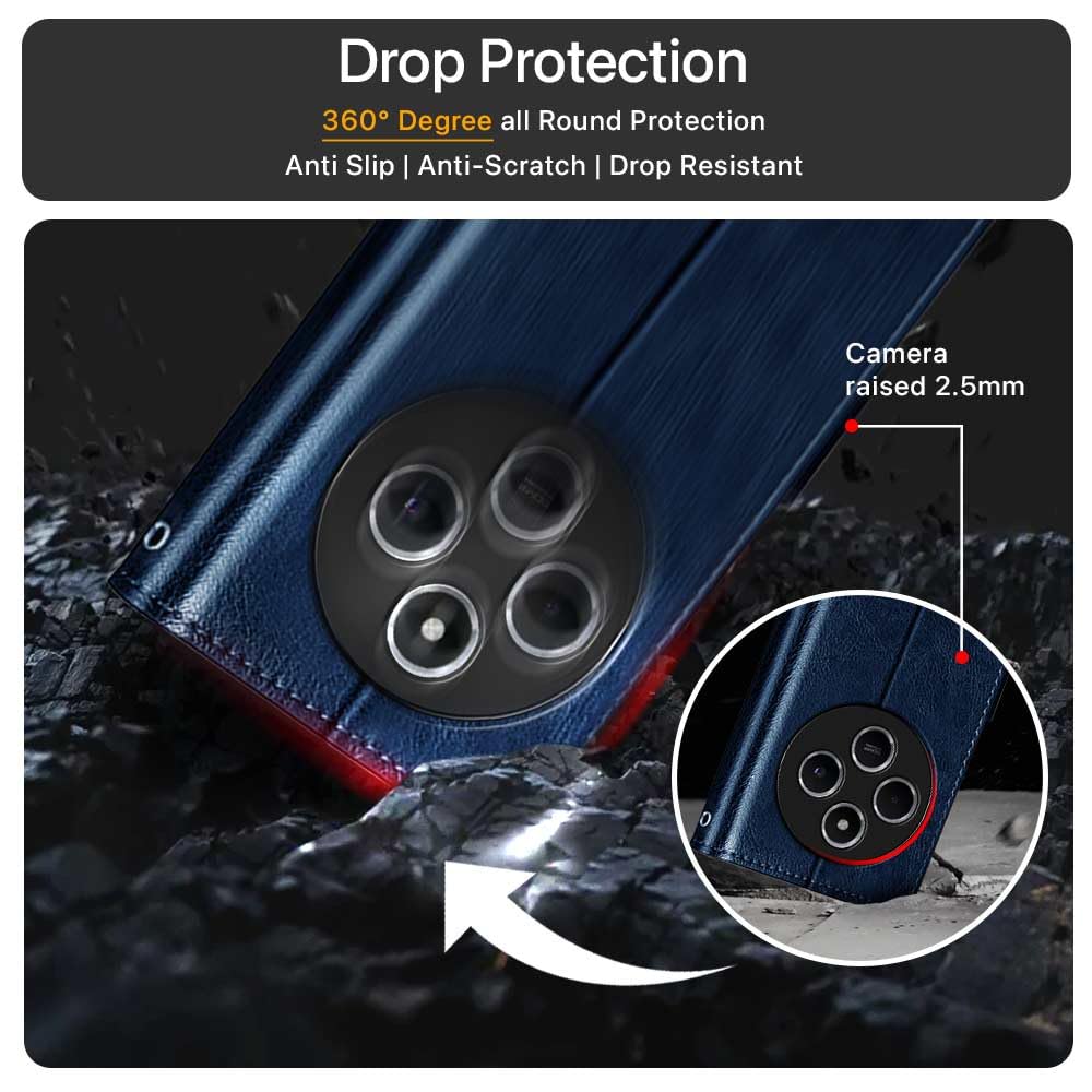 Shock Proof Flip Cover Back Case for 1+ Oneplus 12R 5G | Magnetic Wallet Leather Case with Stand