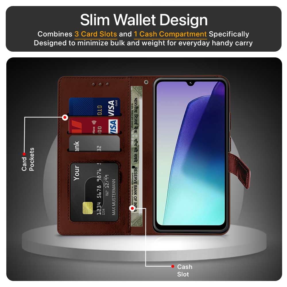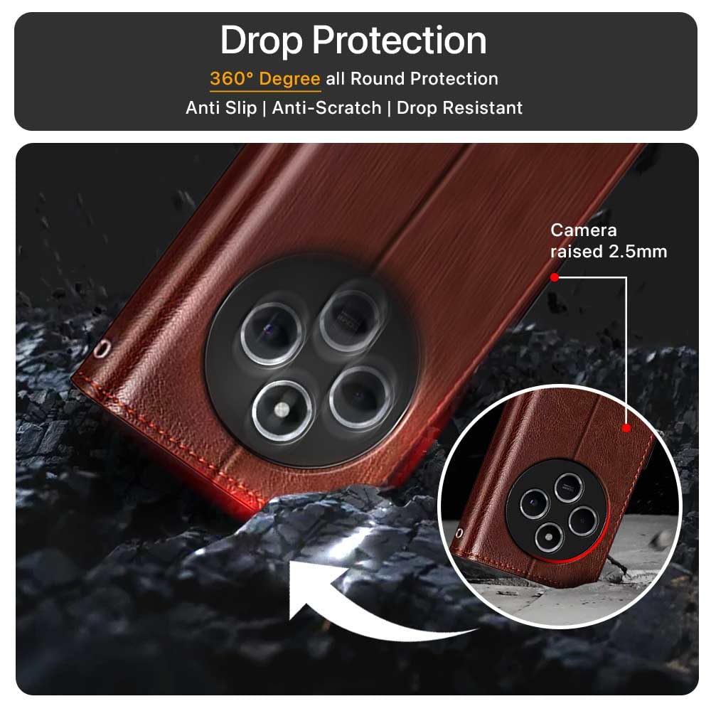 Shock Proof Flip Cover Back Case for Redmi A4 5G | Magnetic Wallet Leather Case with Stand