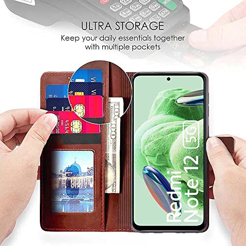 Shock Proof Flip Cover Back Case for Redmi Note 12 5G | Magnetic Wallet Leather Case with Stand