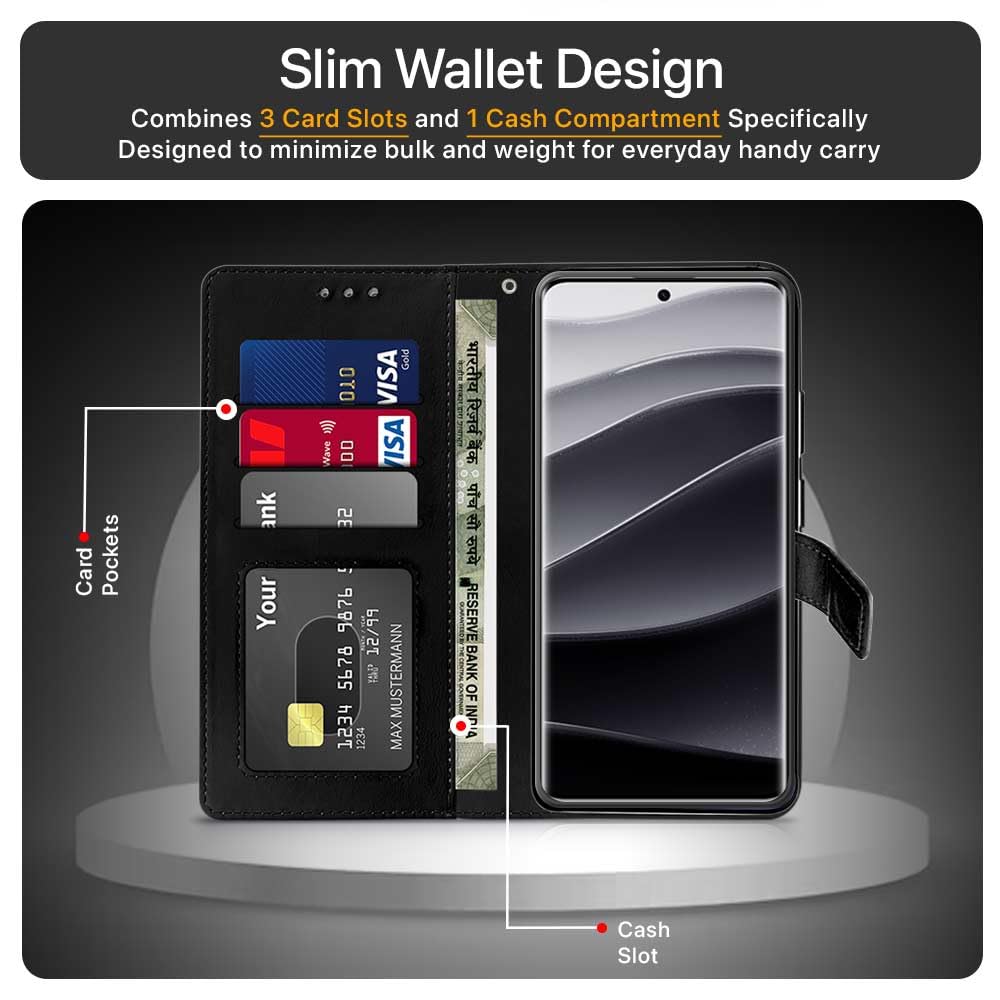 Shock Proof Flip Cover Back Case for Redmi Note 14 Pro 5G | Magnetic Wallet Leather Case with Stand