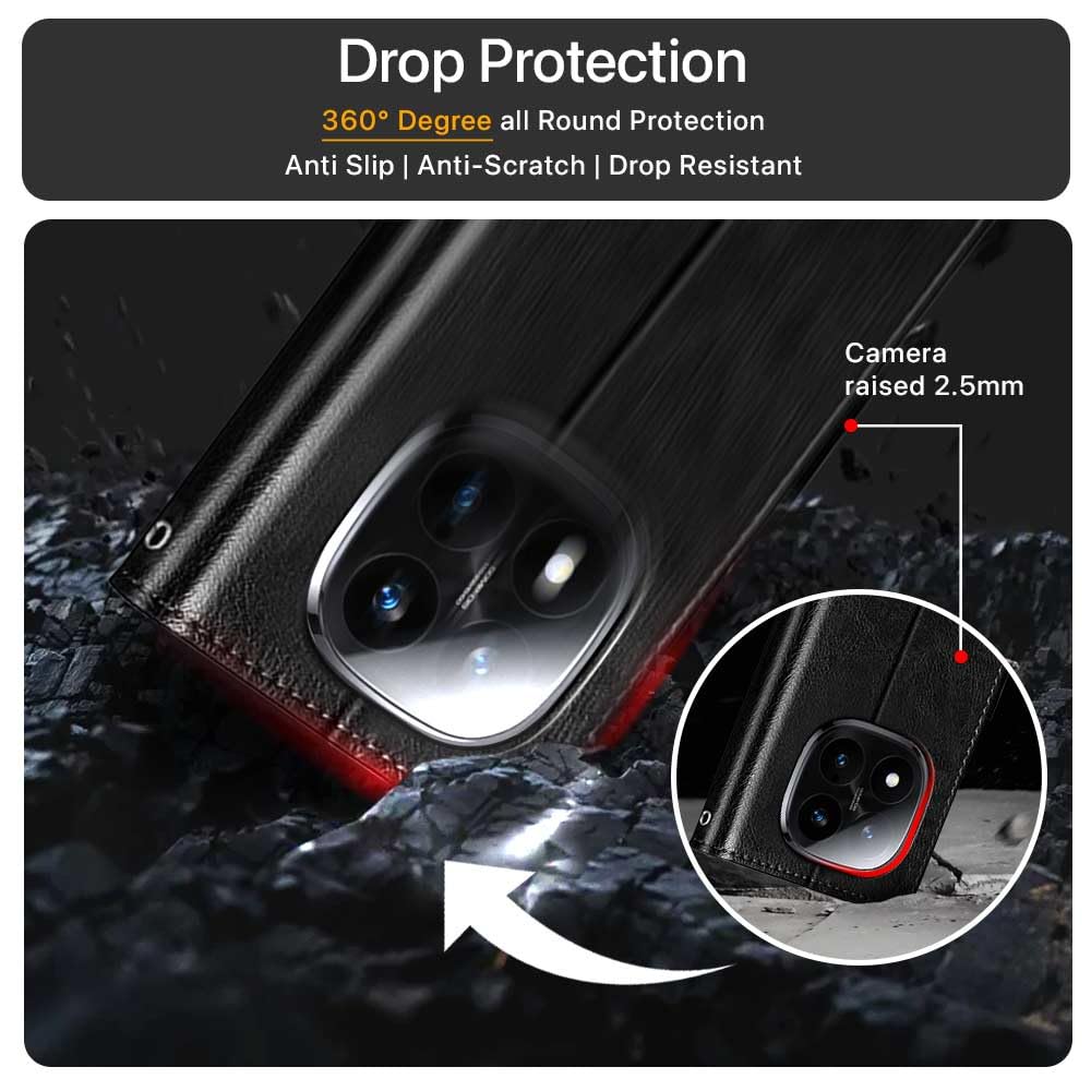 Shock Proof Flip Cover Back Case for Redmi Note 14 Pro Plus 5G | Magnetic Wallet Leather Case with Stand