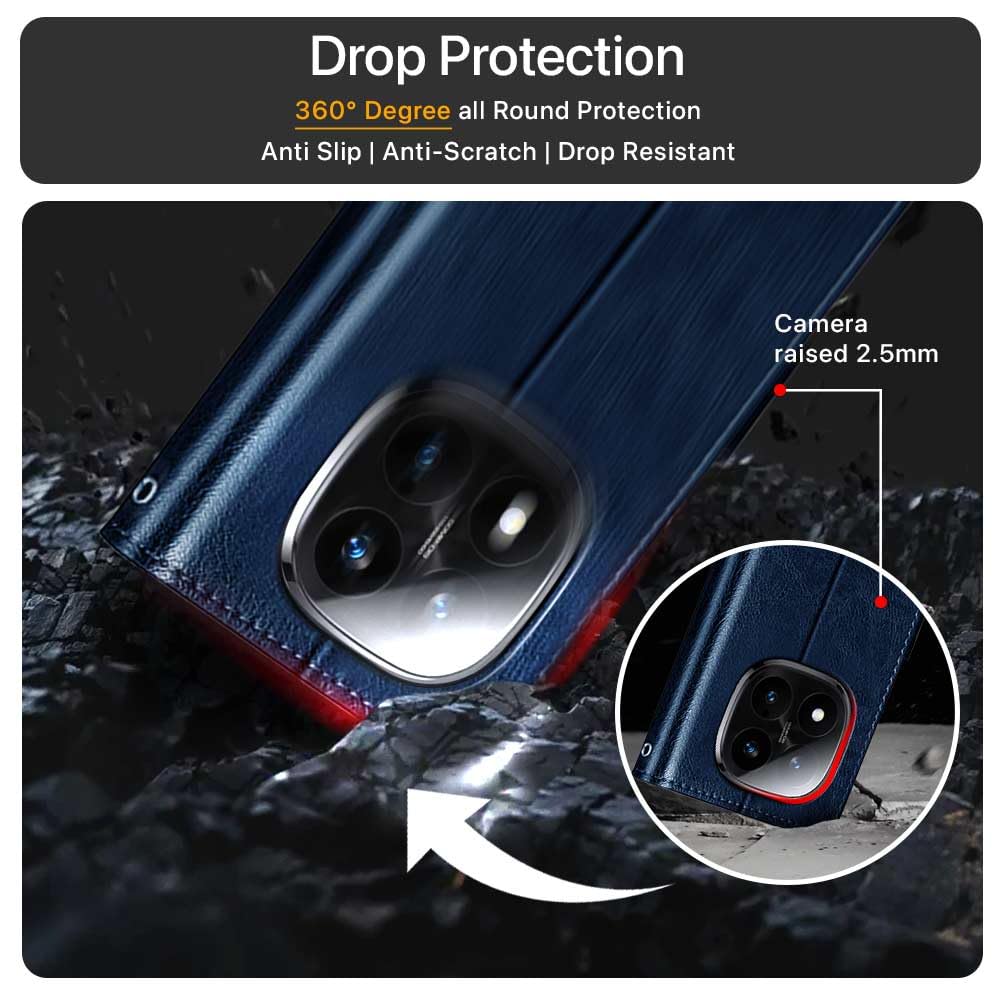 Shock Proof Flip Cover Back Case for Redmi Note 14 Pro Plus 5G | Magnetic Wallet Leather Case with Stand