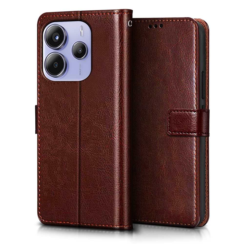 Buy premium shock proof flip cover back case for redmi note 14 se 5g. Leather finish with magnetic flip closure, wallet pockets and stand support. Durable protection against drops and scratches with a perfect fit for redmi note 14 se 5g.