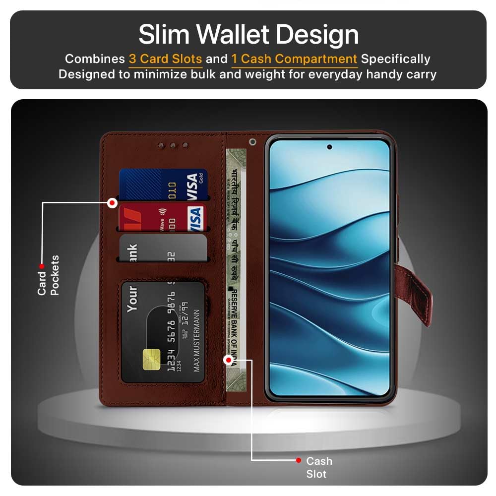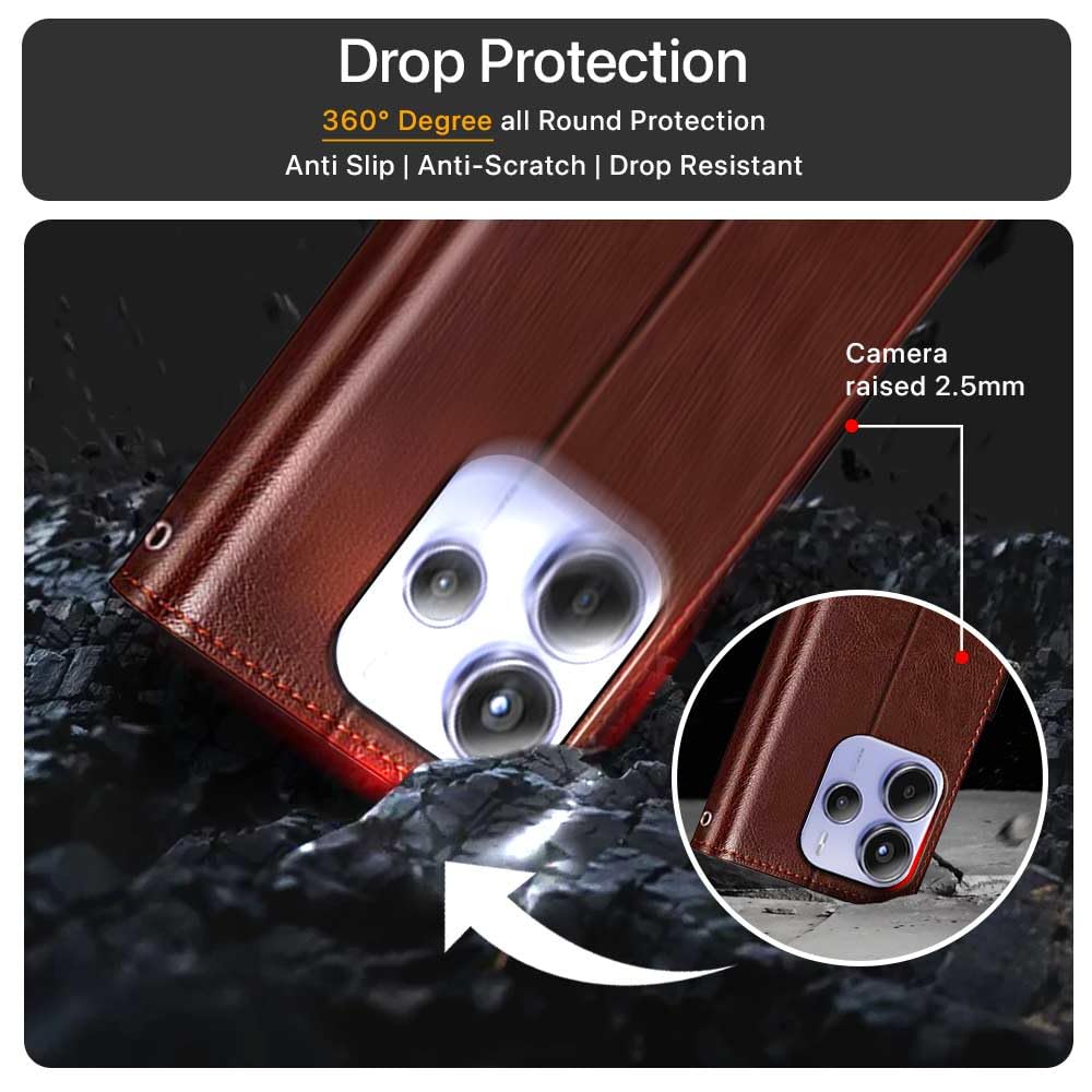 Shock Proof Flip Cover Back Case for Redmi Note 14 Se 5G | Magnetic Wallet Leather Case with Stand