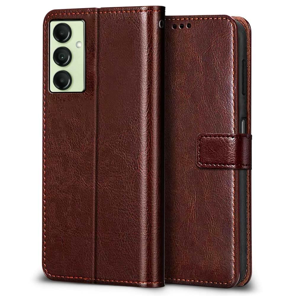 Buy premium shock proof flip cover back case for samsung galaxy a14 5g. Leather finish with magnetic flip closure, wallet pockets and stand support. Durable protection against drops and scratches with a perfect fit for samsung galaxy a14 5g.