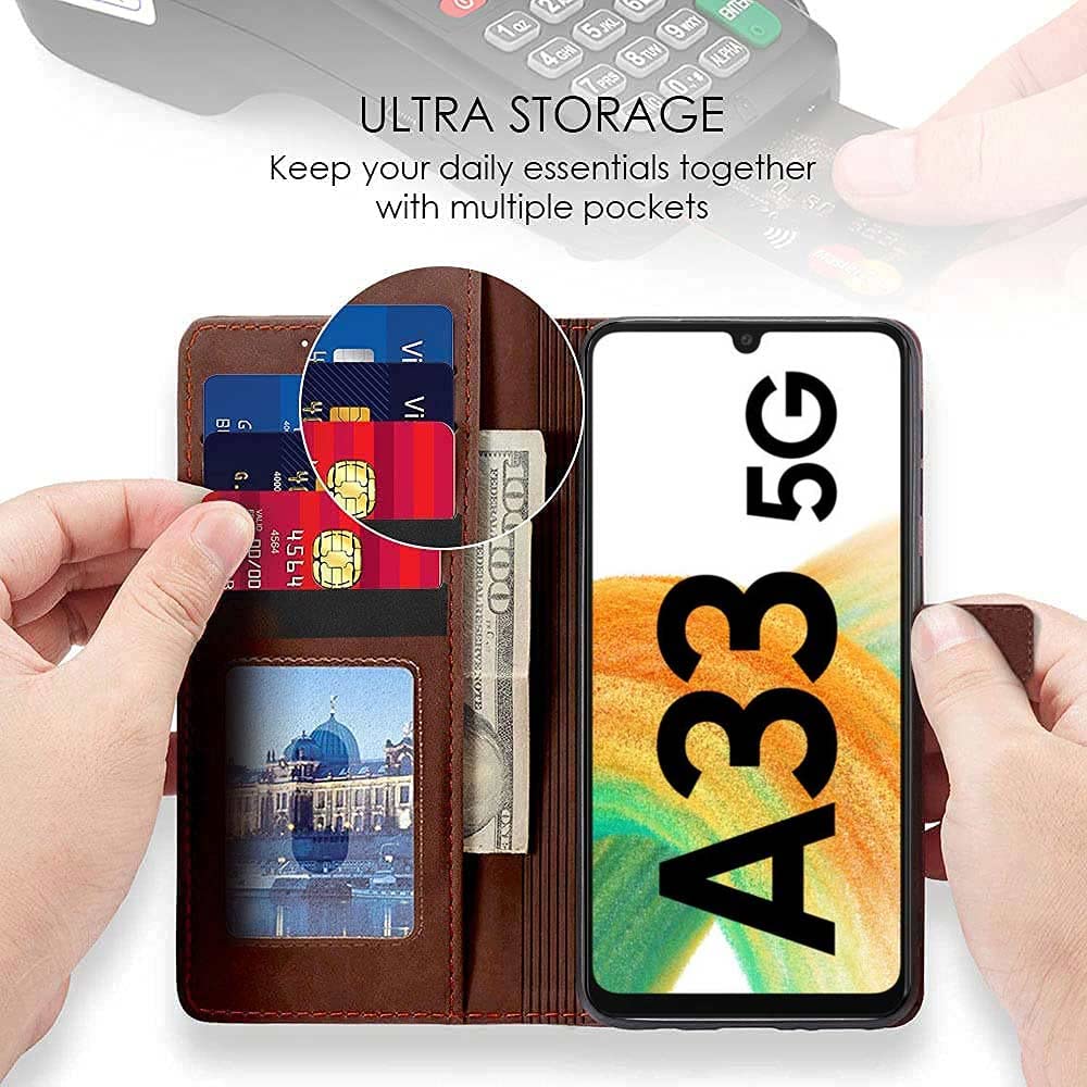 Shock Proof Flip Cover Back Case for Samsung Galaxy A33 5G | Magnetic Wallet Leather Case with Stand