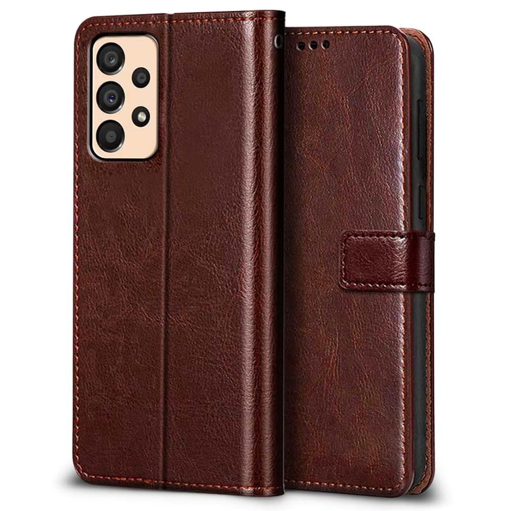 Buy premium shock proof flip cover back case for samsung galaxy a33 5g. Leather finish with magnetic flip closure, wallet pockets and stand support. Durable protection against drops and scratches with a perfect fit for samsung galaxy a33 5g.