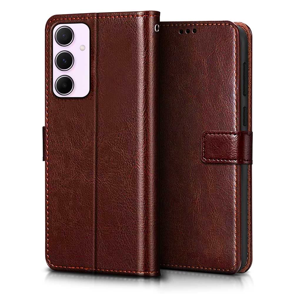 Buy premium shock proof flip cover back case for samsung galaxy a35 5g. Leather finish with magnetic flip closure, wallet pockets and stand support. Durable protection against drops and scratches with a perfect fit for samsung galaxy a35 5g.