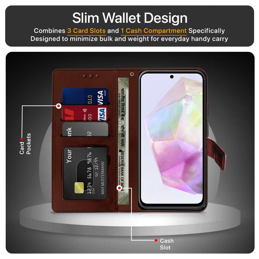 Shock Proof Flip Cover Back Case for Samsung Galaxy A35 5G | Magnetic Wallet Leather Case with Stand