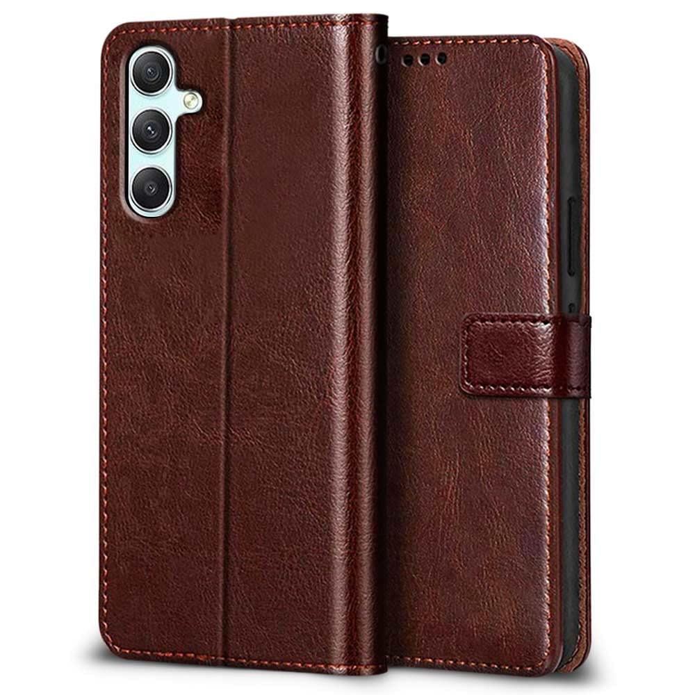 Buy premium shock proof flip cover back case for samsung galaxy a54 5g. Leather finish with magnetic flip closure, wallet pockets and stand support. Durable protection against drops and scratches with a perfect fit for samsung galaxy a54 5g.