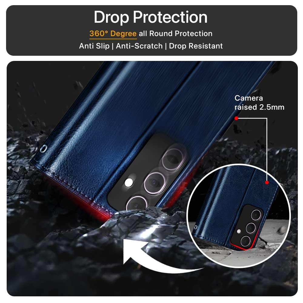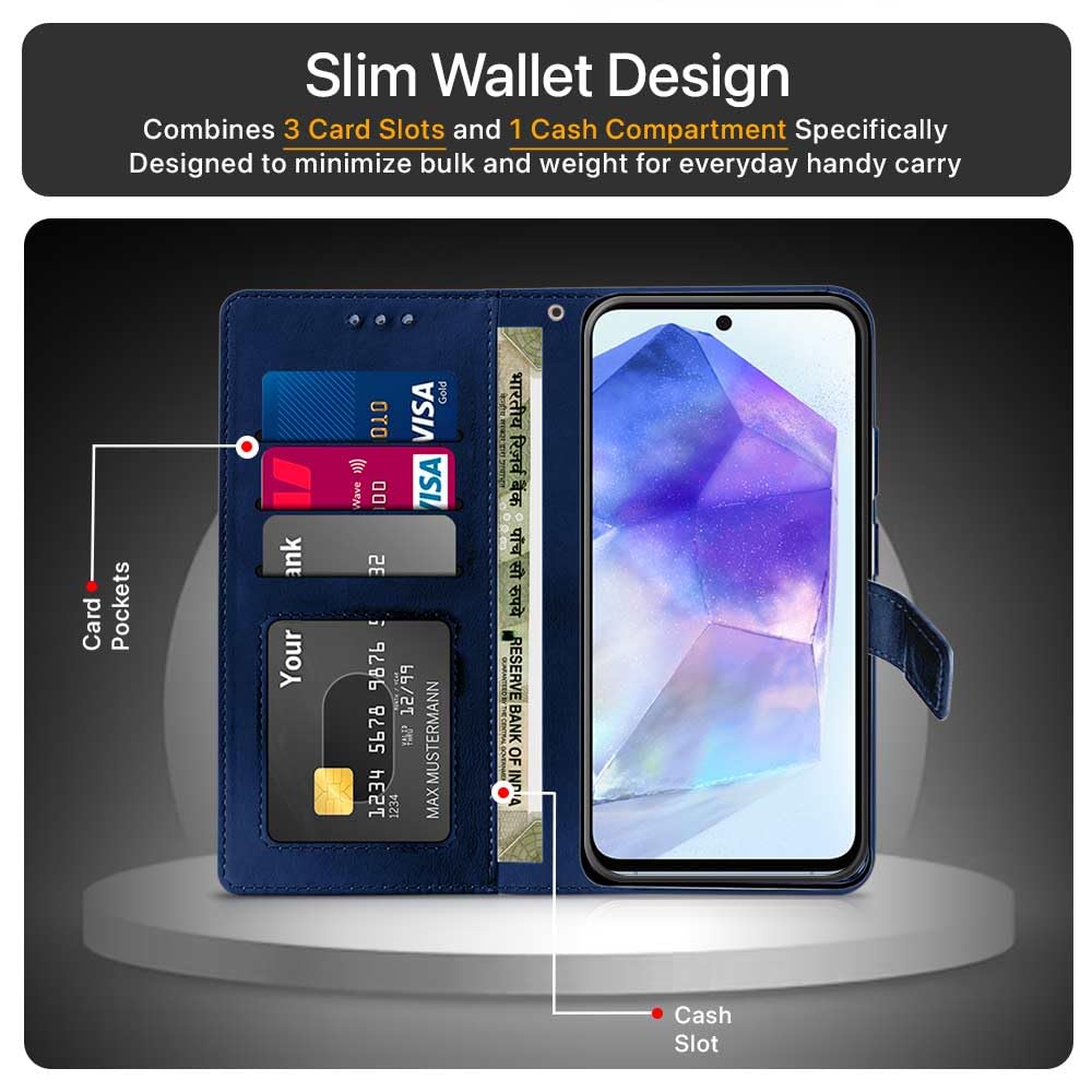 Shock Proof Flip Cover Back Case for Samsung Galaxy A55 5G | Magnetic Wallet Leather Case with Stand