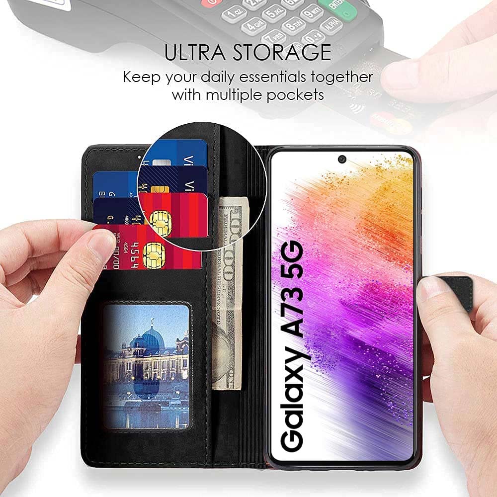 Shock Proof Flip Cover Back Case for Samsung Galaxy A73 5G | Magnetic Wallet Leather Case with Stand