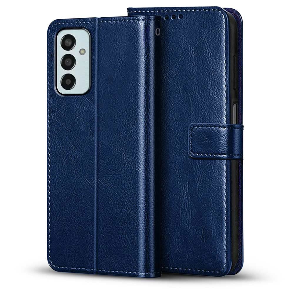 Buy premium shock proof flip cover back case for samsung galaxy f13. Leather finish with magnetic flip closure, wallet pockets and stand support. Durable protection against drops and scratches with a perfect fit for samsung galaxy f13.