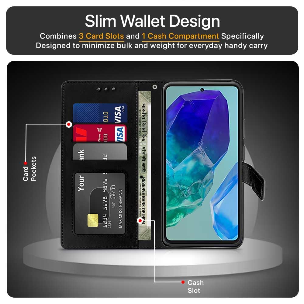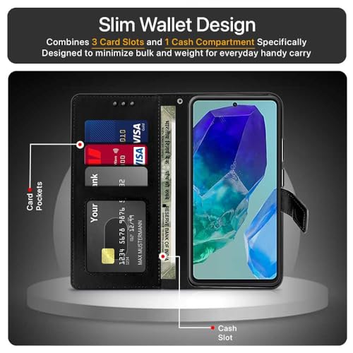 Shock Proof Flip Cover Back Case for Samsung Galaxy M55 5G | Magnetic Wallet Leather Case with Stand
