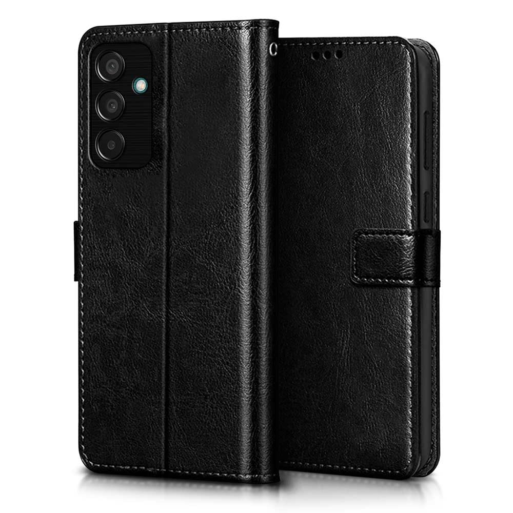Buy premium shock proof flip cover back case for samsung galaxy m55 5g. Leather finish with magnetic flip closure, wallet pockets and stand support. Durable protection against drops and scratches with a perfect fit for samsung galaxy m55 5g.