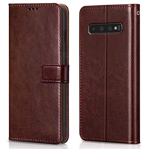 Shock Proof Flip Cover Back Case for Samsung Galaxy S10 Plus | Magnetic Wallet Leather Case with Stand