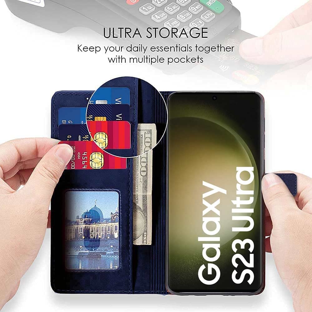 Shock Proof Flip Cover Back Case for Samsung Galaxy S23 Ultra 5G | Magnetic Wallet Leather Case with Stand
