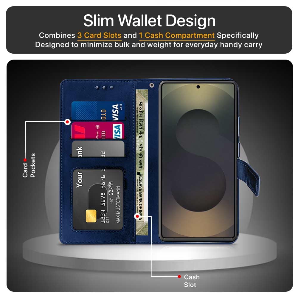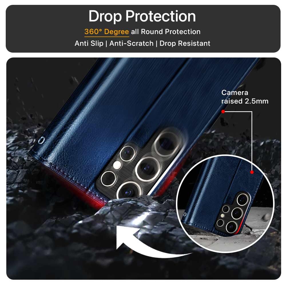 Shock Proof Flip Cover Back Case for Samsung Galaxy S25 Ultra 5G | Magnetic Wallet Leather Case with Stand