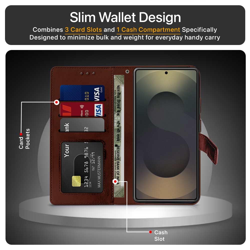 Shock Proof Flip Cover Back Case for Samsung Galaxy S25 Ultra 5G | Magnetic Wallet Leather Case with Stand