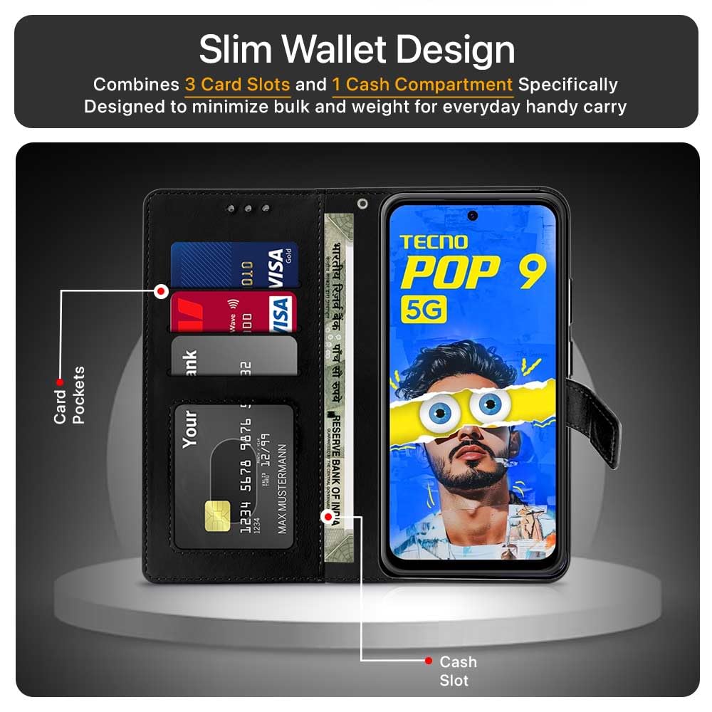 Shock Proof Flip Cover Back Case for Tecno Pop 9 5G | Magnetic Wallet Leather Case with Stand
