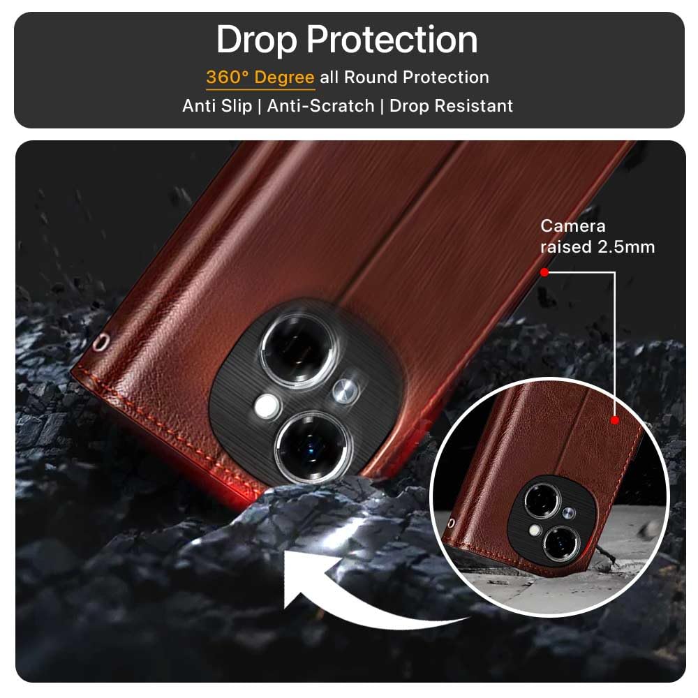 Shock Proof Flip Cover Back Case for Hmd Crest Max 5G | Magnetic Wallet Leather Case with Stand