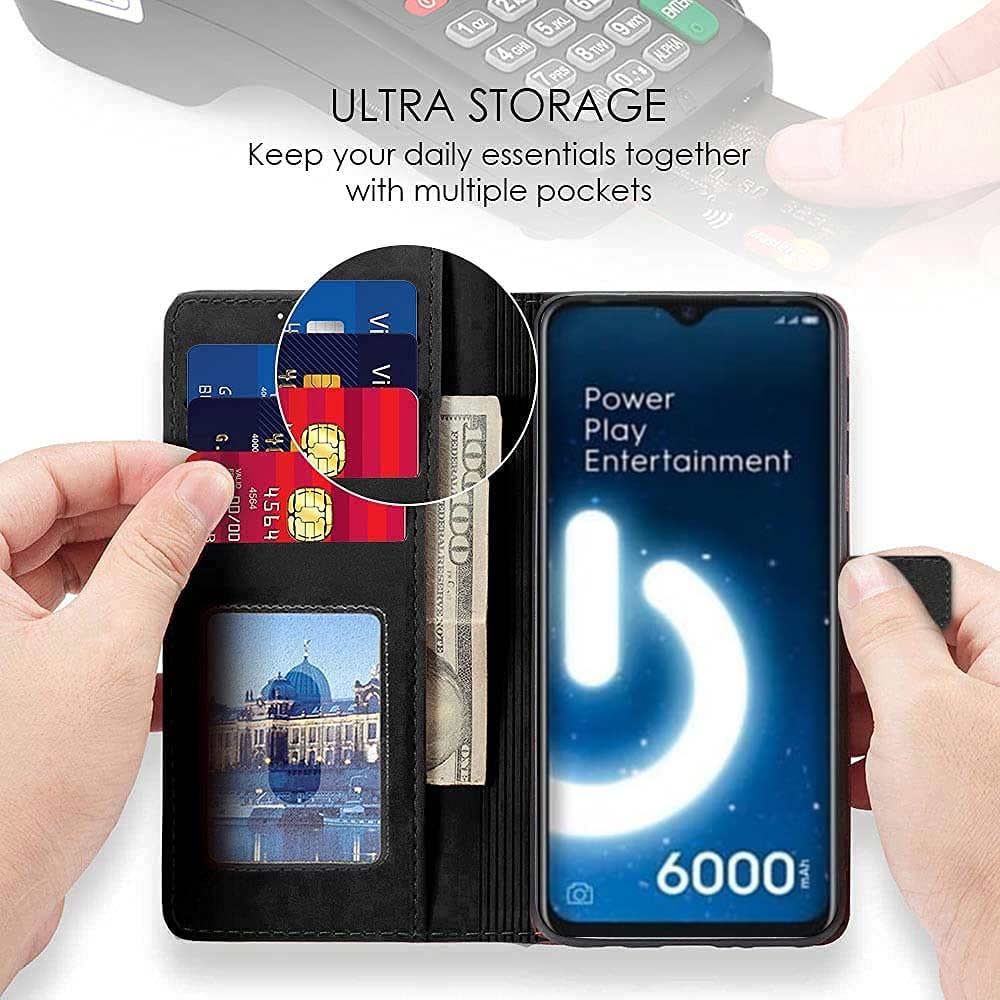 Shock Proof Flip Cover Back Case for Tecno Spark Power 2 | Magnetic Wallet Leather Case with Stand