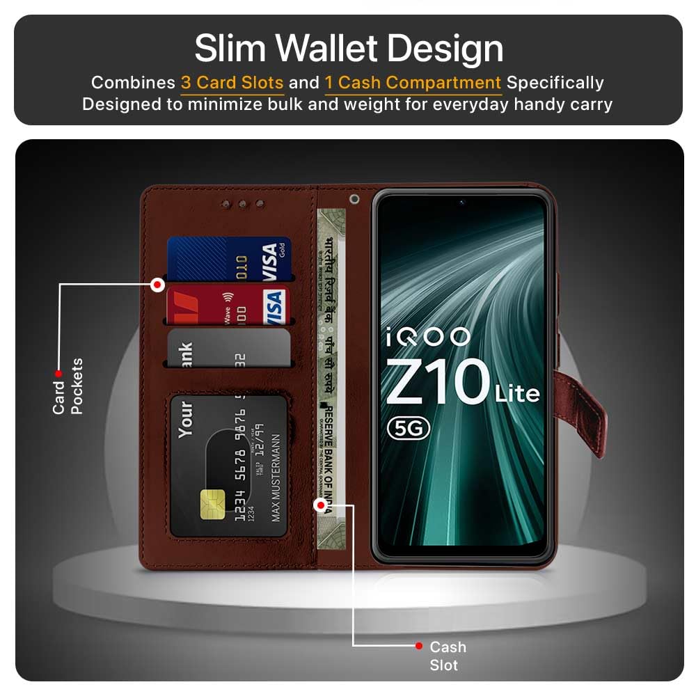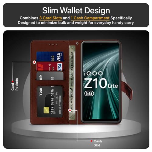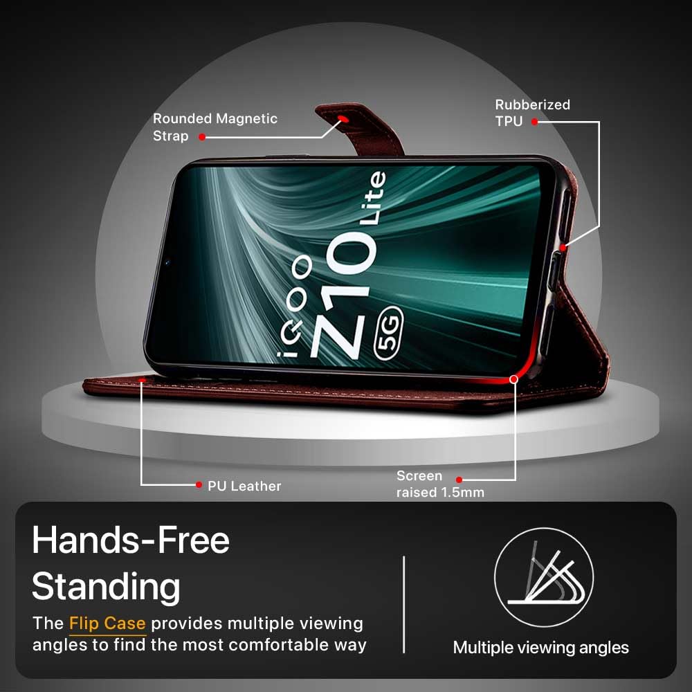 Shock Proof Flip Cover Back Case for Vivo T4 Lite 5G | Magnetic Wallet Leather Case with Stand