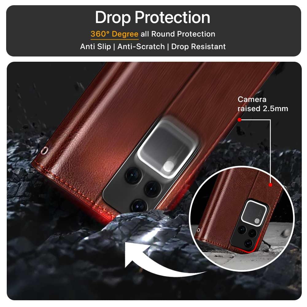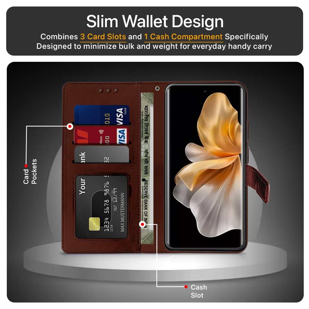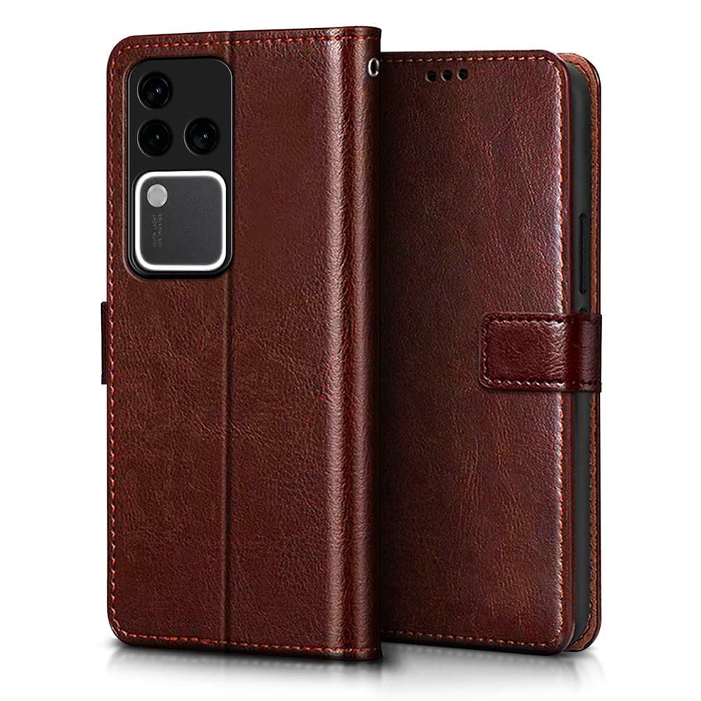 Shock Proof Flip Cover Back Case for Vivo V30 Pro | Magnetic Wallet Leather Case with Stand