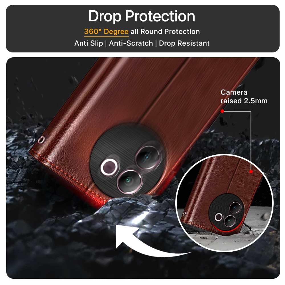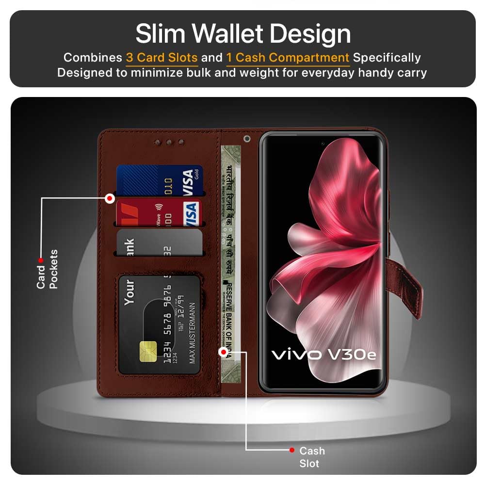 Shock Proof Flip Cover Back Case for Vivo V30E 5G | Magnetic Wallet Leather Case with Stand
