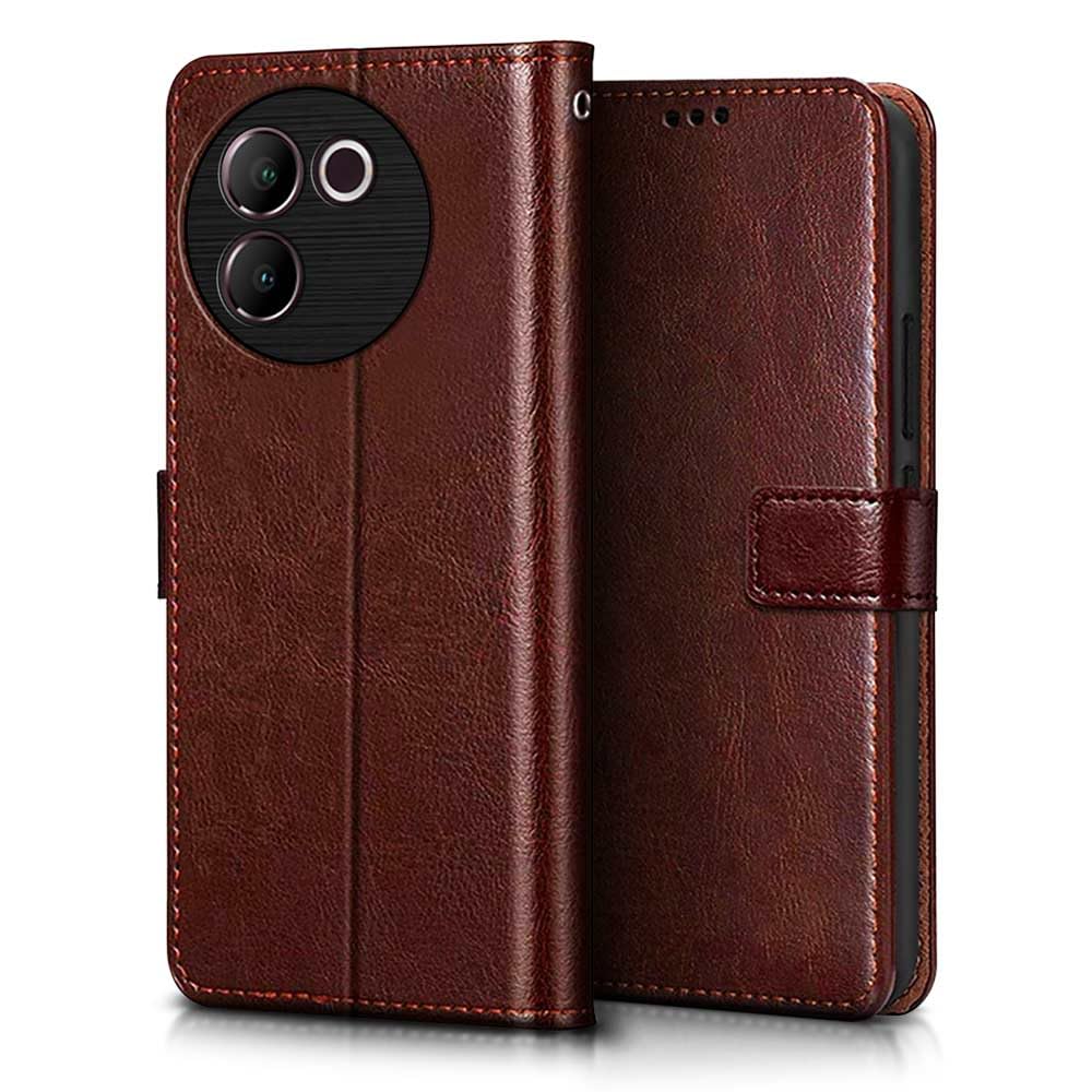 Buy premium shock proof flip cover back case for vivo v30e 5g. Leather finish with magnetic flip closure, wallet pockets and stand support. Durable protection against drops and scratches with a perfect fit for vivo v30e 5g.