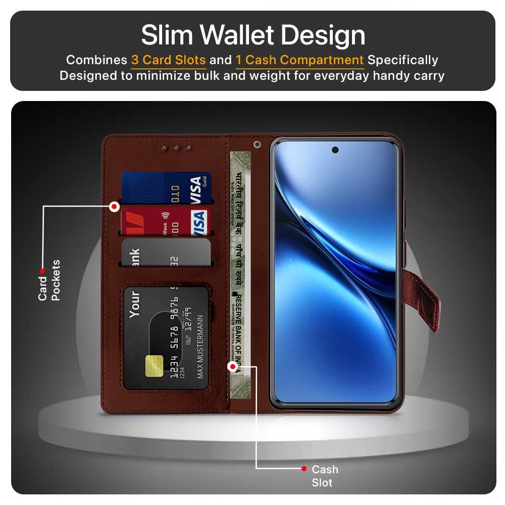 Shock Proof Flip Cover Back Case for Vivo X200 Pro 5G | Magnetic Wallet Leather Case with Stand
