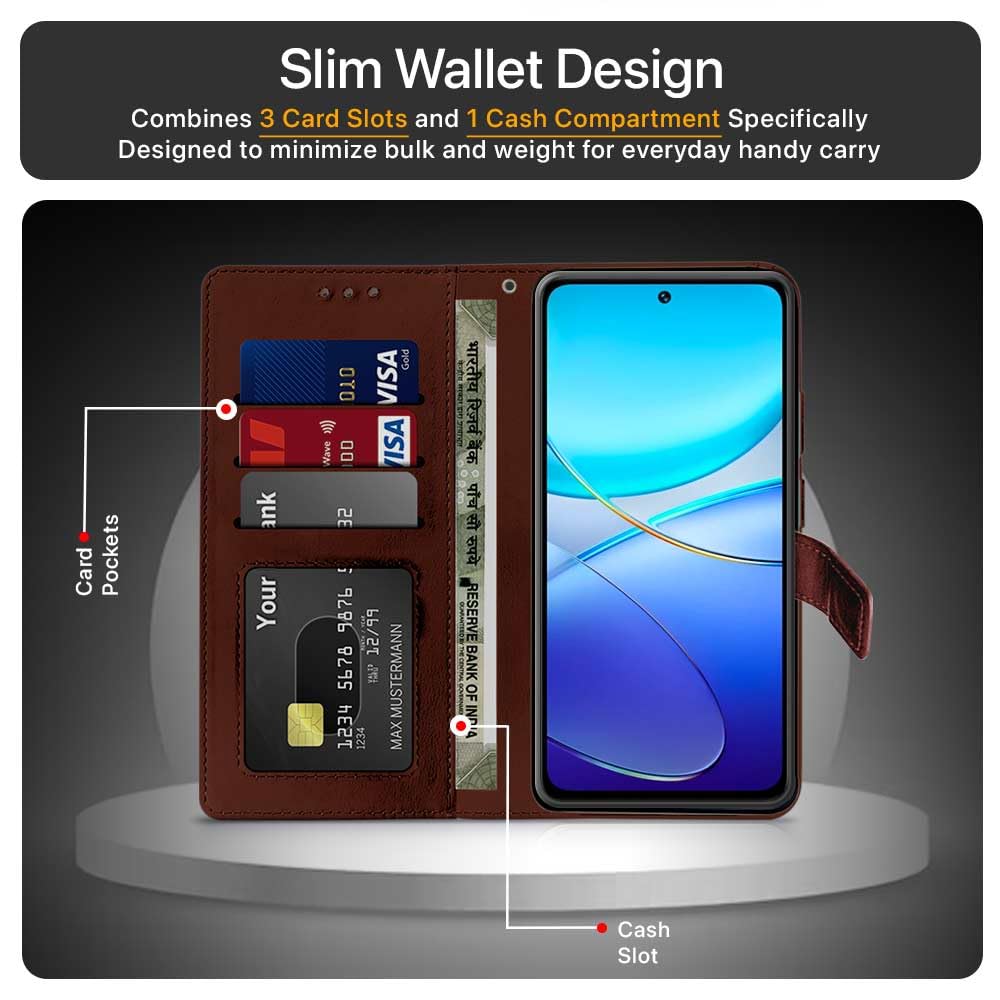 Shock Proof Flip Cover Back Case for Vivo Y200E 5G | Magnetic Wallet Leather Case with Stand