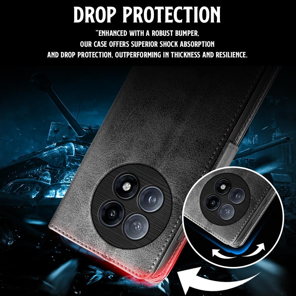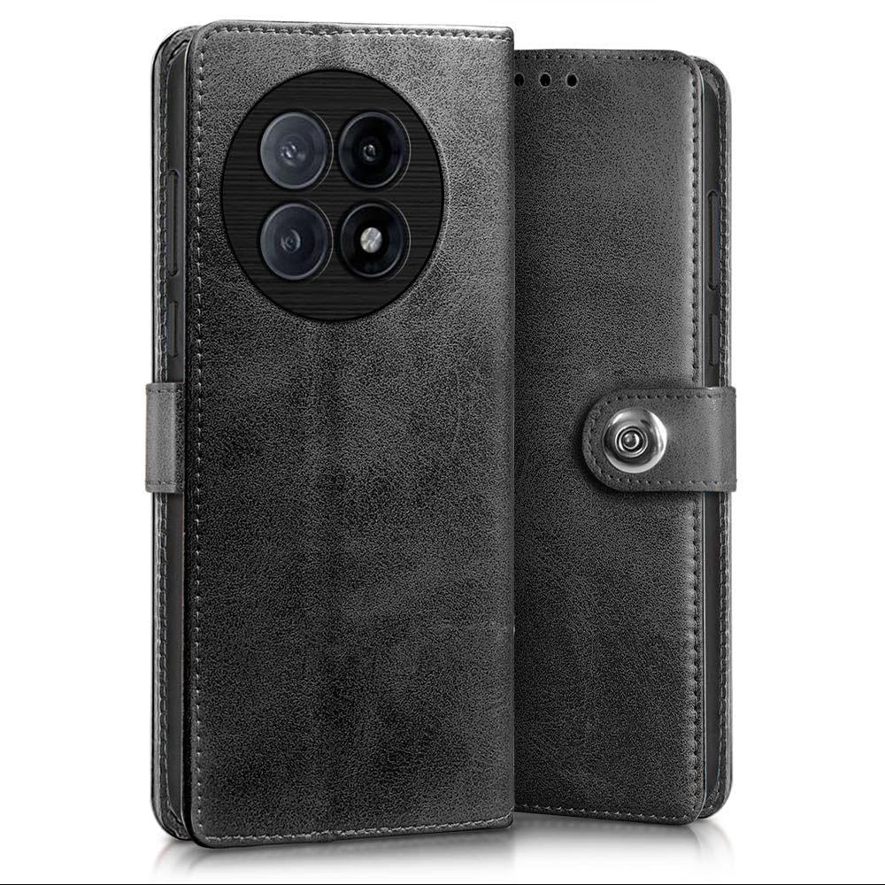 Shock Proof Flip Cover Back Case for 1+ Oneplus 12R 5G | Magnetic Wallet Leather Case with Stand