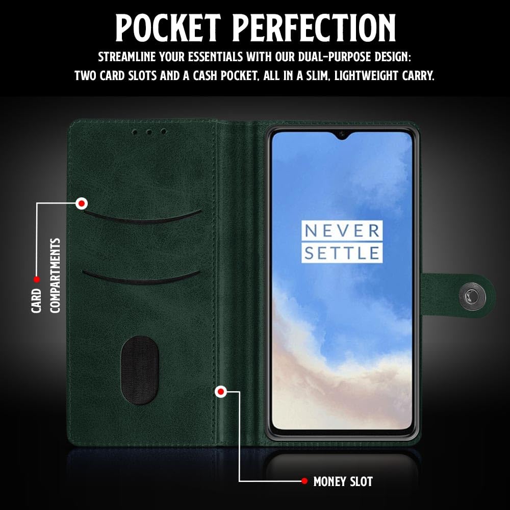 Shock Proof Flip Cover Back Case for 1+ Oneplus 7T | Magnetic Wallet Leather Case with Stand