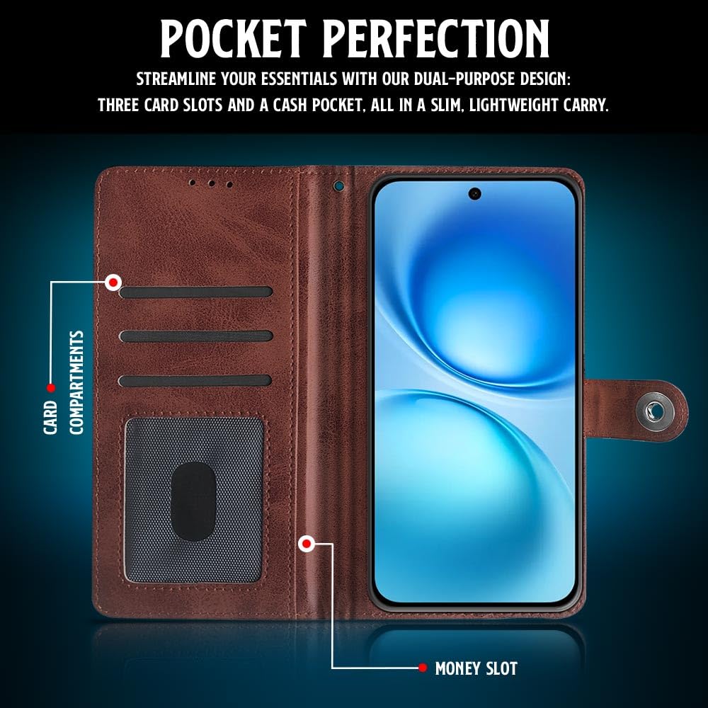 Shock Proof Flip Cover Back Case for Hmd Crest Max 5G | Magnetic Wallet Leather Case with Stand